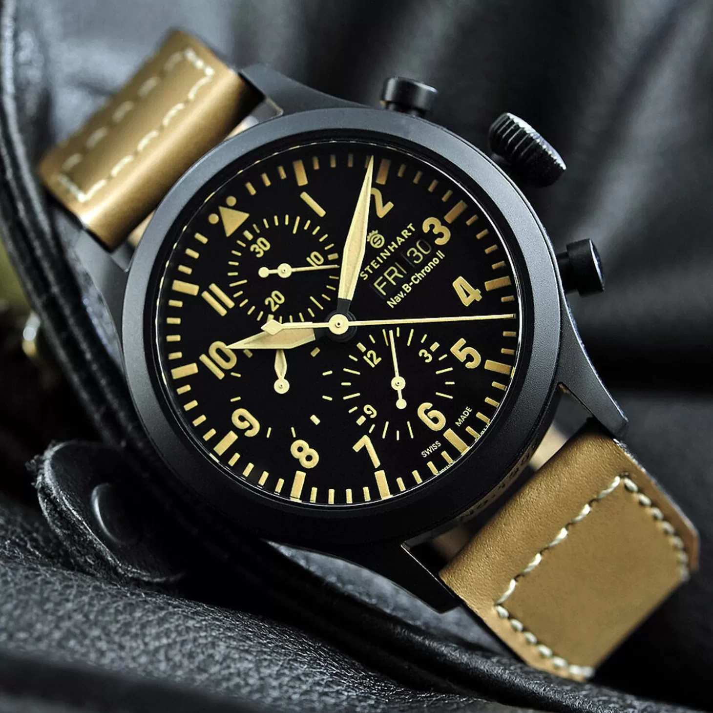 Dit Pilotenhorloge Nav B-Chrono Ii Black Dlc Is Weer Een Chronograaf Gemaakt Door Steinhart Met Het Beproefde Eta Valjou…