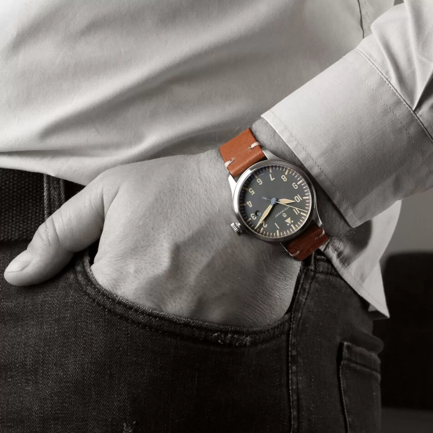 Met Onze Steinhart Nav B 42 Presenteren Wij Een Horloge Dat Niet Alleen De Tijd Aangeeft, Maar Ook Richting Geeft. Geïnspireerd Door De Instrumenten Van Luchtvaartpioniers, Is De Steinhart Een Eerbetoon Aan Het Tijdperk Van Ontdekkingsreizigers Van De Hemel En Degenen Die Voortdurend Streven Naar Precisie.